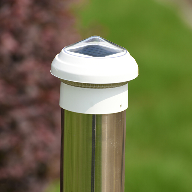 2211-CP1 WH Plastic Chain Link Fence Solar Post Cap Light merupakan produk penerangan yang efisien dan ramah lingkungan yang dirancang untuk tiang pagar chain link berukuran 2,5 inci, cocok untuk kebutuhan penerangan dekoratif dan keselamatan di ruang luar. Berukuran 85x85x70 mm dan terbuat dari bahan plastik berkualitas tinggi, tahan lama dan tahan terhadap lingkungan luar ruangan yang keras seperti angin, hujan, dan sinar UV. Lampu tiang dirancang agar pas dengan tiang pagar standar 2,5 inci. Pemasangannya mudah dan cepat tanpa memerlukan alat tambahan atau pengoperasian yang rumit, dan dapat dengan cepat menambahkan sumber cahaya terang ke halaman, taman, jalan masuk, atau area pagar Anda.